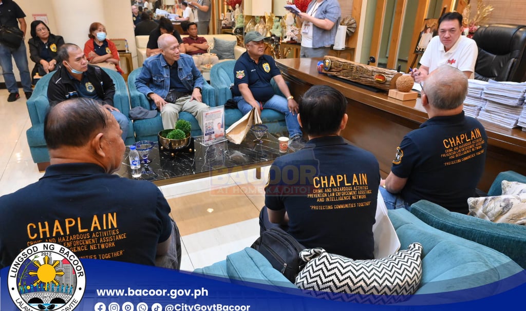 The leadership of Crime and Hazardous Activities Prevention, Law enforcement Assistance and Intelligence Network (CHAPLAIN, INC.) paid a courtesy visit to Mayor Strike B. Revilla at the Mayor’s Office, City of Bacoor. Our Founding Chairman, Dr. Bishop Delfin G. Giducos, together with our officers and members, personally expressed our organization's strong interest in helping the city. CHAPLAIN, INC. is ready to take a proactive role in crime prevention, providing proper guidance through values formation, and maintaining peace and order. We also discussed the presence of the Honorable Mayor at the upcoming CHAPLAIN, INC. 1st Year Anniversary this March. It is our goal to work hand-in-hand with our local LGUs to fully implement and pursue the mission of CHAPLAIN, INC. here in the City of Bacoor. Thank you, Mayor Strike B. Revilla, for the warm welcome and the meaningful conversation. We look forward to seeing the City of Bacoor continue to thrive as a safe and God-centered community. Mabuhay ang Bacooreños! Mabuhay ang CHAPLAIN, INC.!